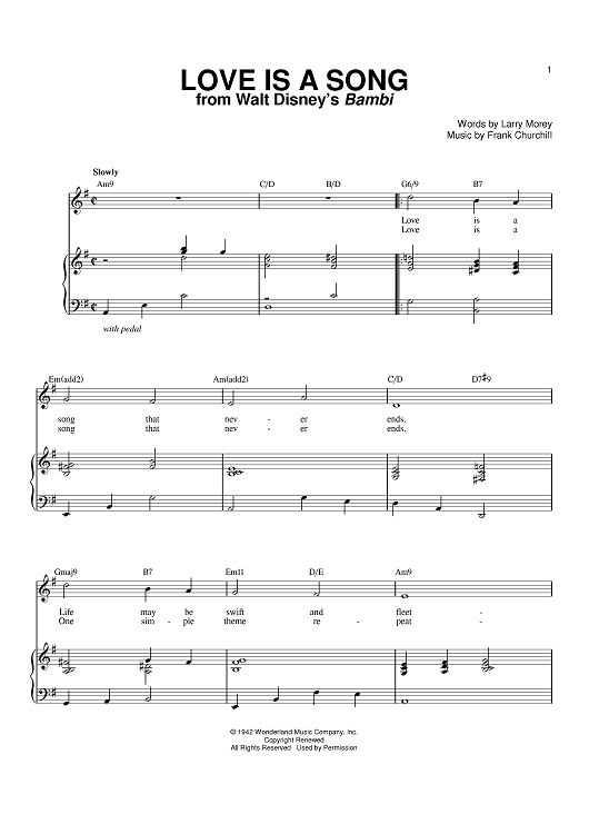 Digital Sheet Music for Love Is A Song by Larry Morey, Frank Churchill, Donald Novis scored for Piano/Vocal/Chords; id:381229
