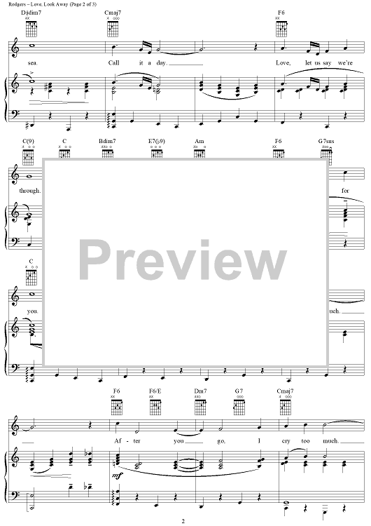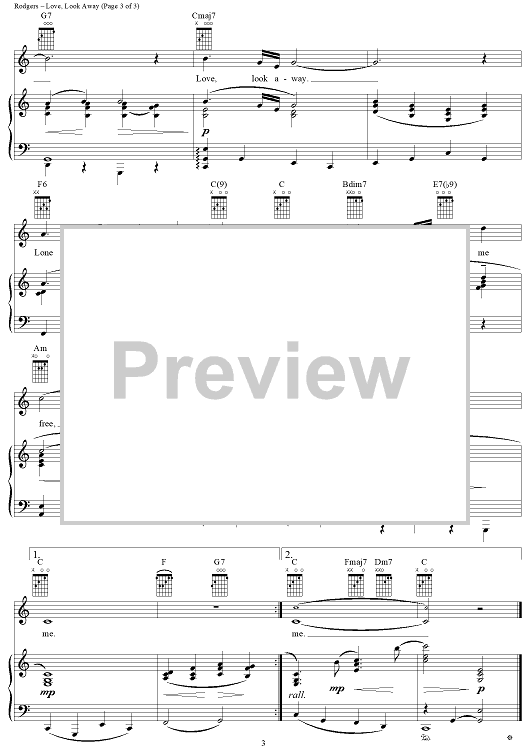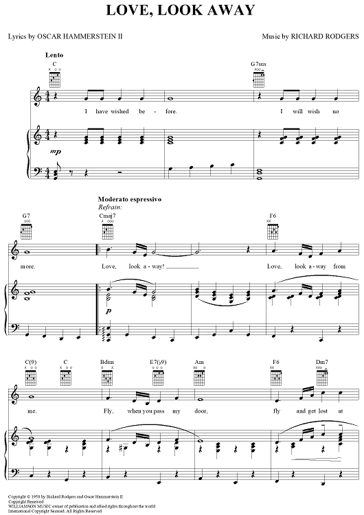Digital Sheet Music for Love, Look Away by Richard Rodgers, Oscar Hammerstein II scored for Piano/Vocal/Chords; id:367072