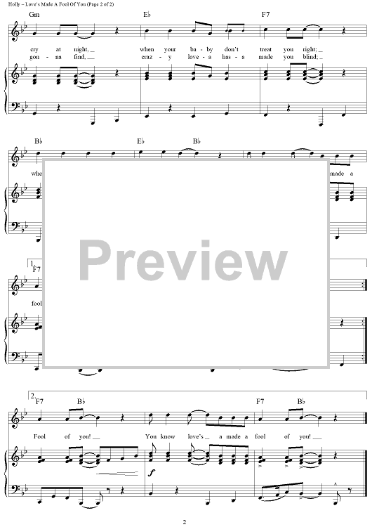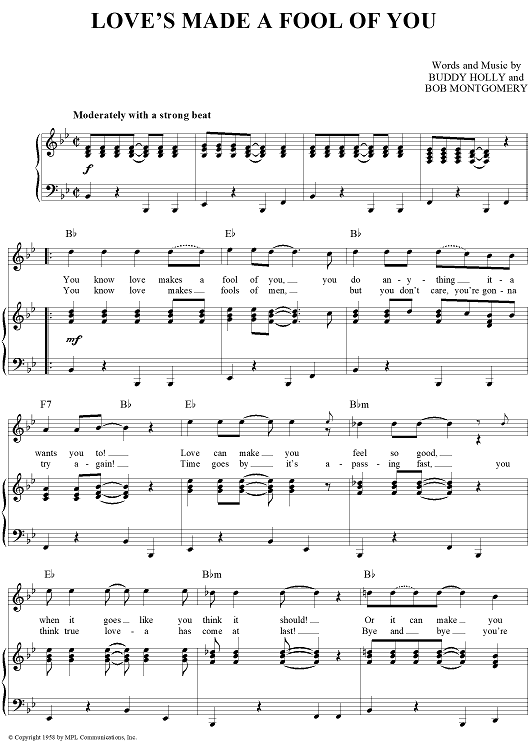 Digital Sheet Music for Love's Made A Fool Of You by Buddy Holly, Bob Montgomery scored for Piano/Vocal/Chords; id:366820