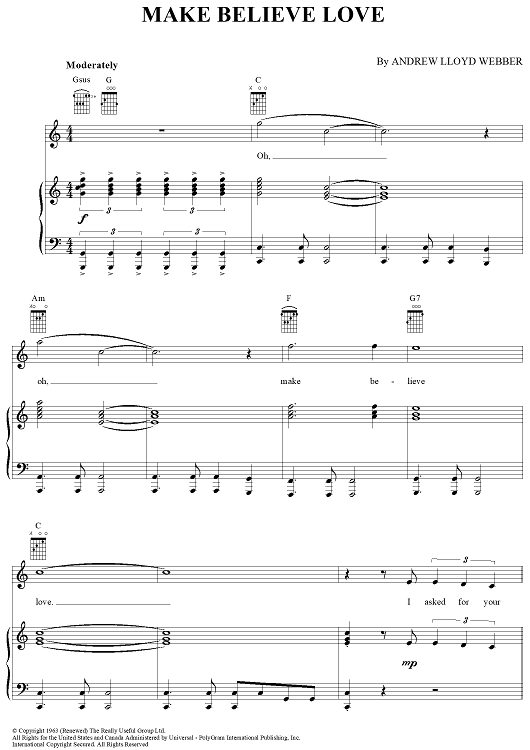 Digital Sheet Music for Make Believe Love by Andrew Lloyd Webber, Clive Sarstedt scored for Piano/Vocal/Chords; id:367185