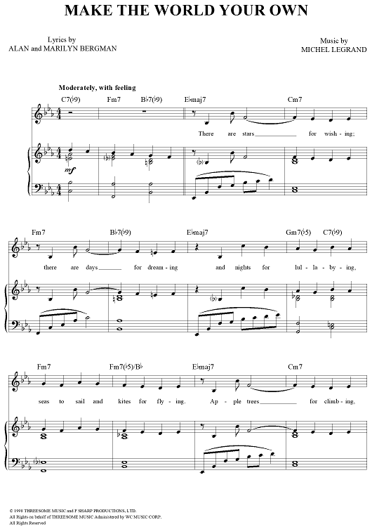 Digital Sheet Music for Make the World Your Own by Michel LeGrand, Alan Bergman, Marilyn Bergman, Tony Bennett scored for Piano/Vocal/Chords; id:120294