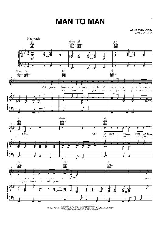 Digital Sheet Music for Man To Man by Gary Allan, Jamie O'Hara scored for Piano/Vocal/Chords; id:370406