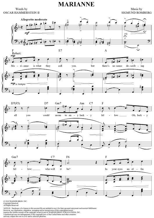 Digital Sheet Music for Marianne by Sigmund Romberg, Oscar Hammerstein II scored for Piano/Vocal/Chords; id:359414