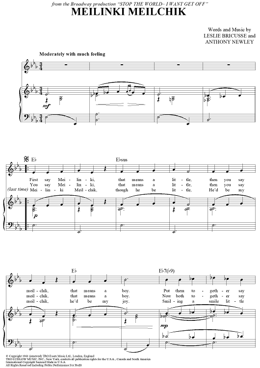 "Meilinki Meilchik" Sheet Music by Leslie Bricusse