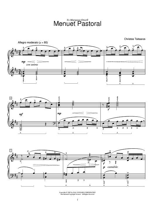 "Menuet Pastoral" Sheet Music by Christos Tsitsaros