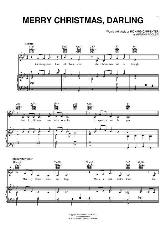 Digital Sheet Music for Merry Christmas, Darling by The Carpenters, Richard Carpenter, Frank Pooler scored for Piano/Vocal/Chords; id:368890