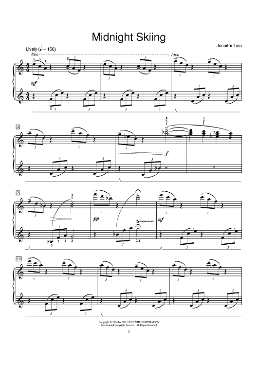 Digital Sheet Music for Midnight Skiing by Jennifer Linn scored for Piano Solo; id:373678