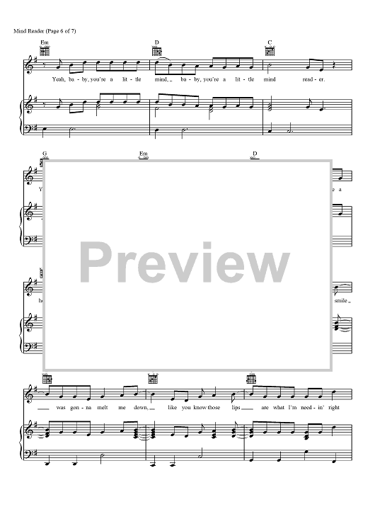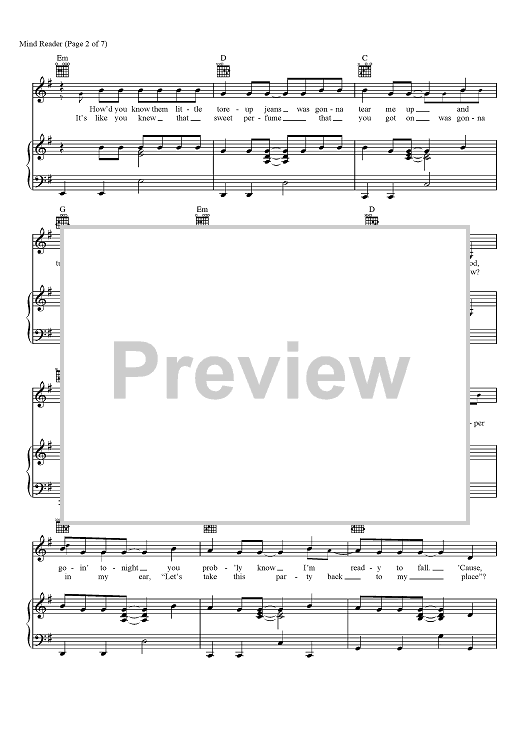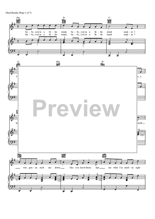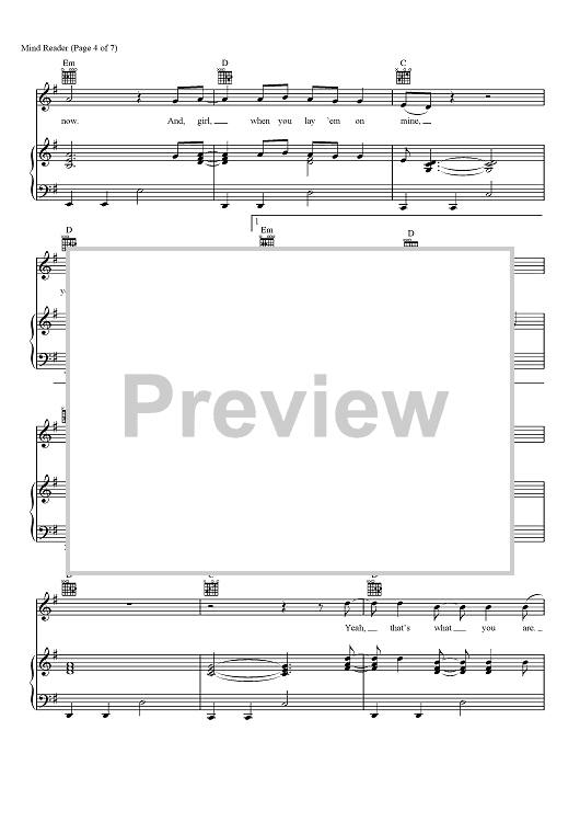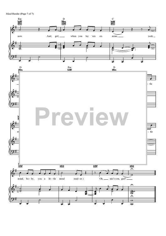 Digital Sheet Music for Mind Reader by Rhett Akins, Ben Hayslip, Dustin Lynch scored for Piano/Vocal/Chords; id:458994