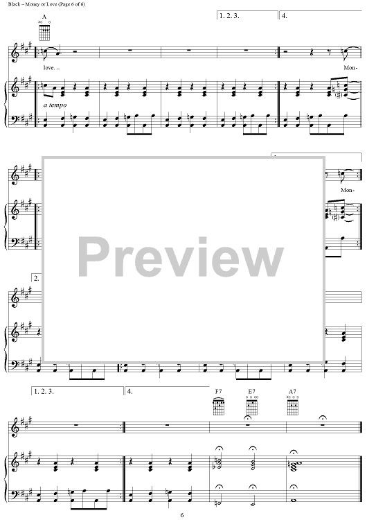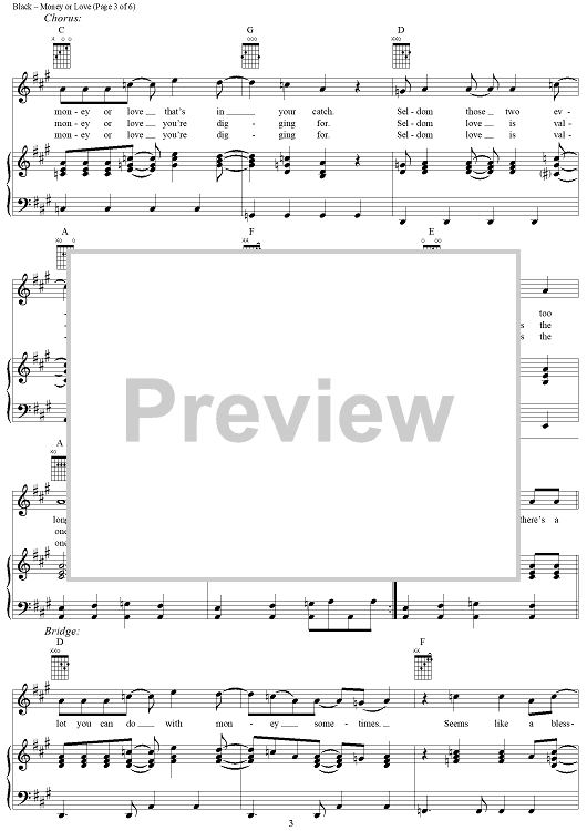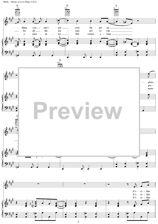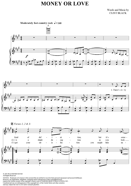 Digital Sheet Music for Money or Love by Clint Black scored for Piano/Vocal/Chords; id:288337