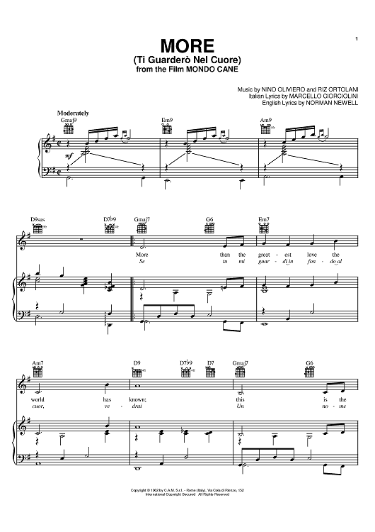 Digital Sheet Music for More by Riz Ortolani, Norman Newell, Marcello Ciorciolini, Nino Oliviero scored for Piano/Vocal/Chords; id:383986