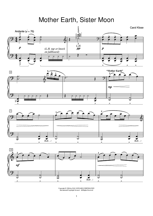 Digital Sheet Music for Mother Earth, Sister Moon by Carol Klose scored for Piano; id:391827