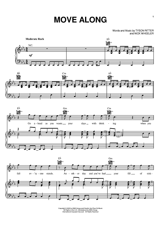 Digital Sheet Music for Move Along by Tyson Ritter, Nick Wheeler scored for Piano/Vocal/Chords; id:395461