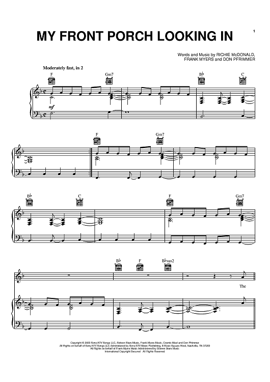 Digital Sheet Music for My Front Porch Looking in by Lonestar, Frank Myers, Don Pfrimmer, Richie McDonald scored for Piano/Vocal/Chords; id:371345