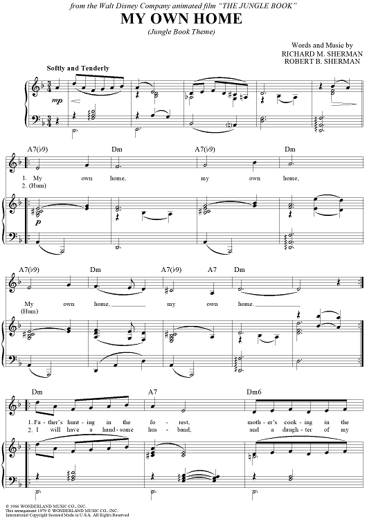 Digital Sheet Music for My Own Home (Jungle Book Theme) by Richard M. Sherman, Robert B. Sherman scored for Piano/Vocal/Chords; id:423133