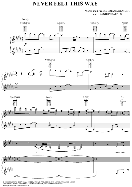 "Never Felt This Way" Sheet Music by Brian McKnight