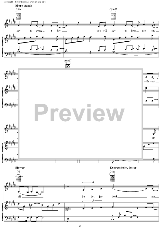 Digital Sheet Music for Never Felt This Way by Brian McKnight, Brandon Barnes, Alicia Keys scored for Piano/Vocal/Chords; id:395399