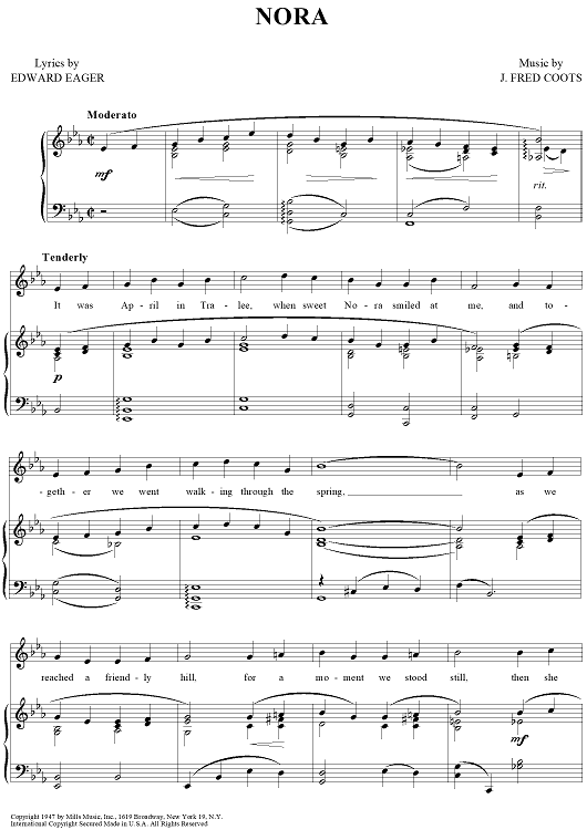 Digital Sheet Music for Nora by J. Fred Coots, Edward Eager scored for Piano/Vocal; id:428431