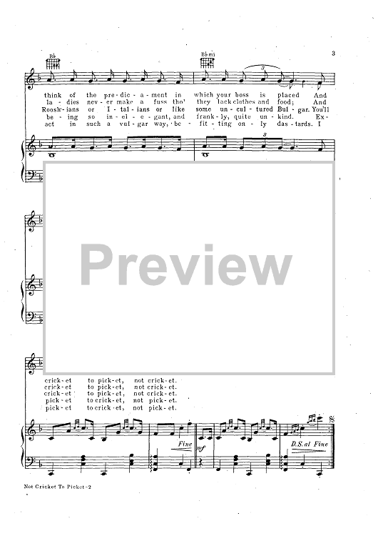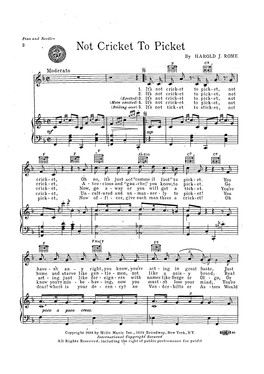 Digital Sheet Music for Not Cricket to Picket by Harold Rome scored for Piano/Vocal; id:424222
