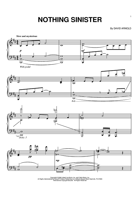 Digital Sheet Music for Nothing Sinister by David Arnold scored for Piano; id:402384