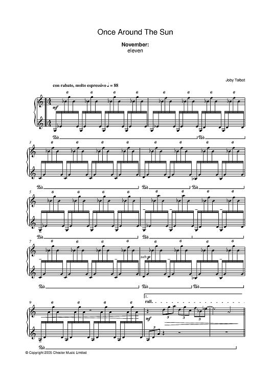 Digital Sheet Music for November (from Once Around The Sun) by Joby Talbot scored for Piano; id:396212