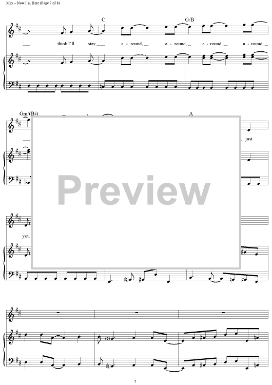 Digital Sheet Music for Now I'm Here by Queen, Brian May scored for Piano/Vocal/Chords; id:367120