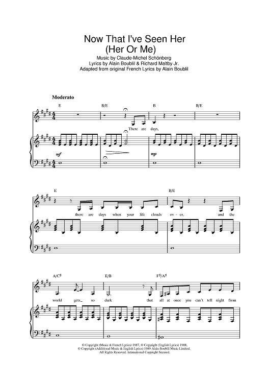 Digital Sheet Music for Now That I've Seen Her by Claude-Michel Schonberg, Alain Boublil, Richard Maltby Jr. scored for Piano/Vocal/Chords; id:387444
