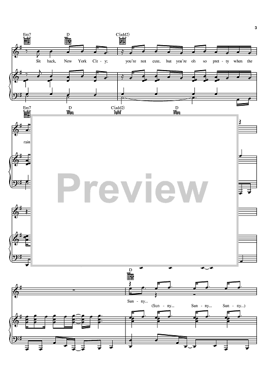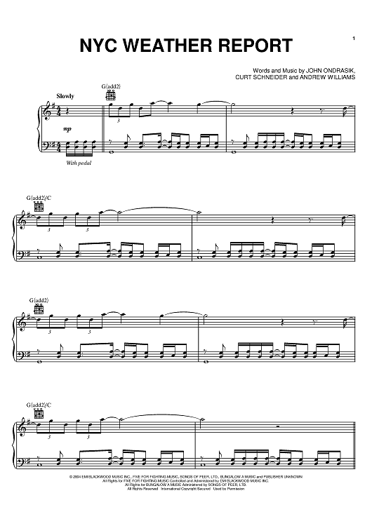 Digital Sheet Music for NYC Weather Report by Five for Fighting, Curt Schneider, Andrew Williams scored for Piano/Vocal/Chords; id:380468