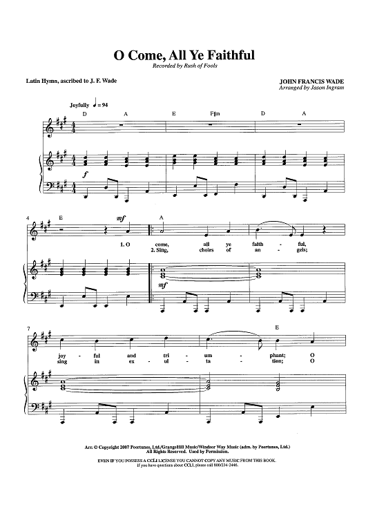 Digital Sheet Music for O Come, All Ye Faithful by John Francis Wade, Rush of Fools, Jason Ingram scored for Piano/Vocal/Chords; id:438283