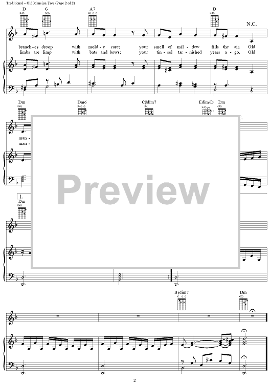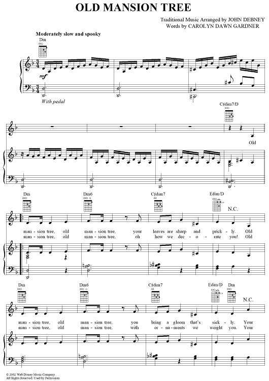 Digital Sheet Music for Old Mansion Tree by John Debney, Traditional, Carolyn Dawn Gardner scored for Piano/Vocal/Chords; id:366915