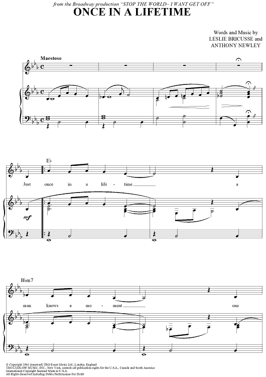 "Once In A Lifetime" Sheet Music by Leslie Bricusse
