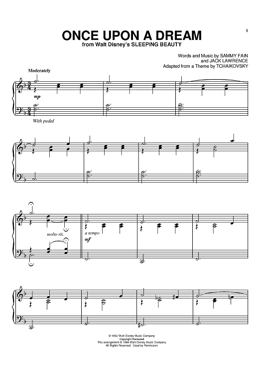 Digital Sheet Music for Once Upon A Dream by Sammy Fain, Jack Lawrence scored for Piano; id:372891