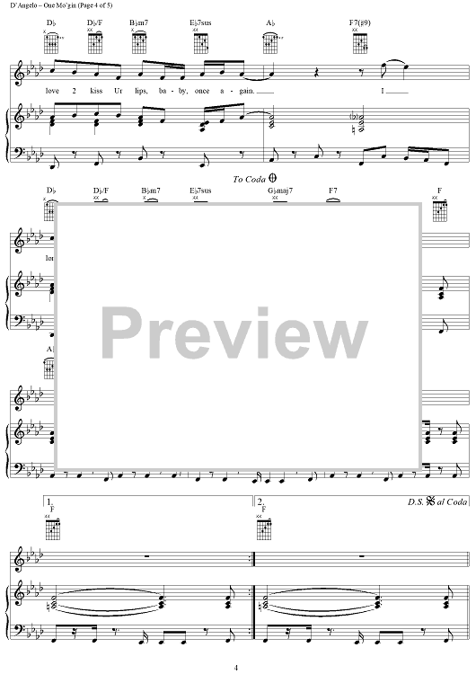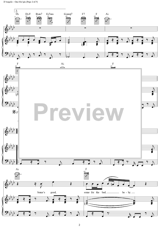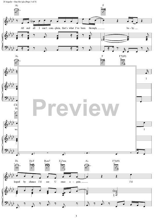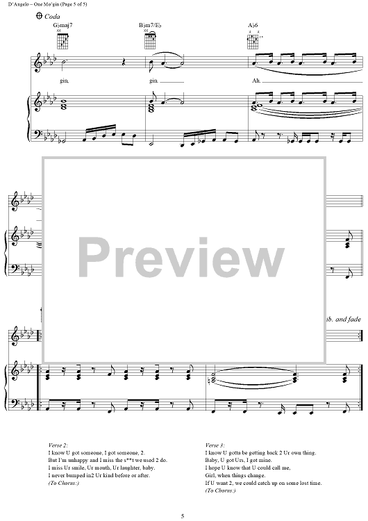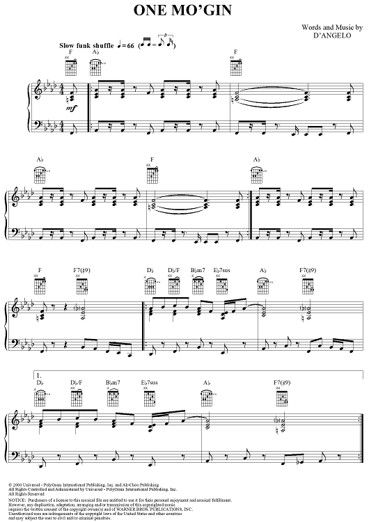 Digital Sheet Music for One Mo'gin by D'Angelo scored for Piano/Vocal/Chords; id:289483