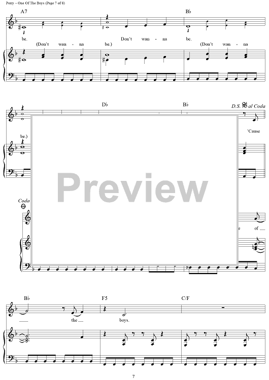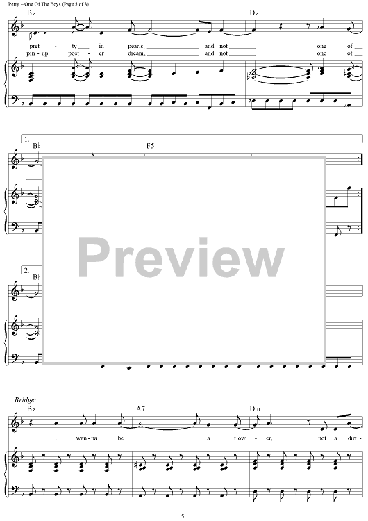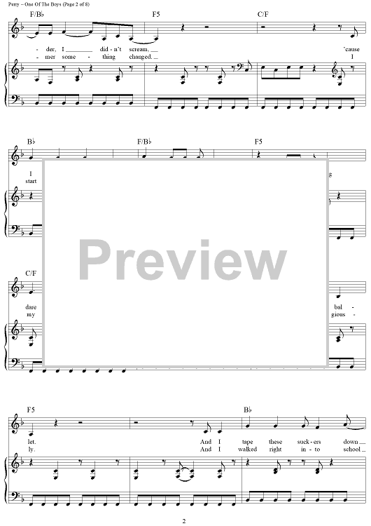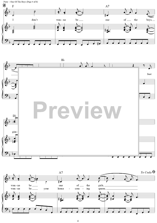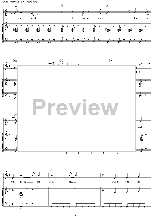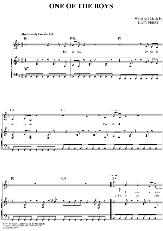 Digital Sheet Music for One Of The Boys by Katy Perry scored for Piano/Vocal/Chords; id:417459