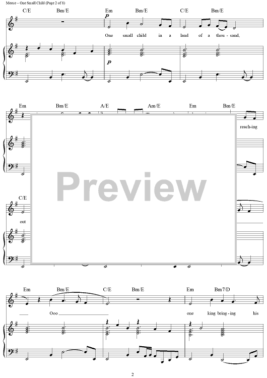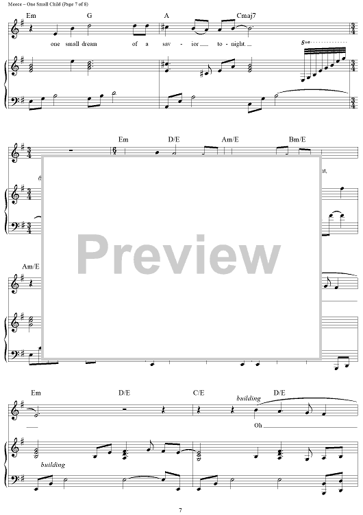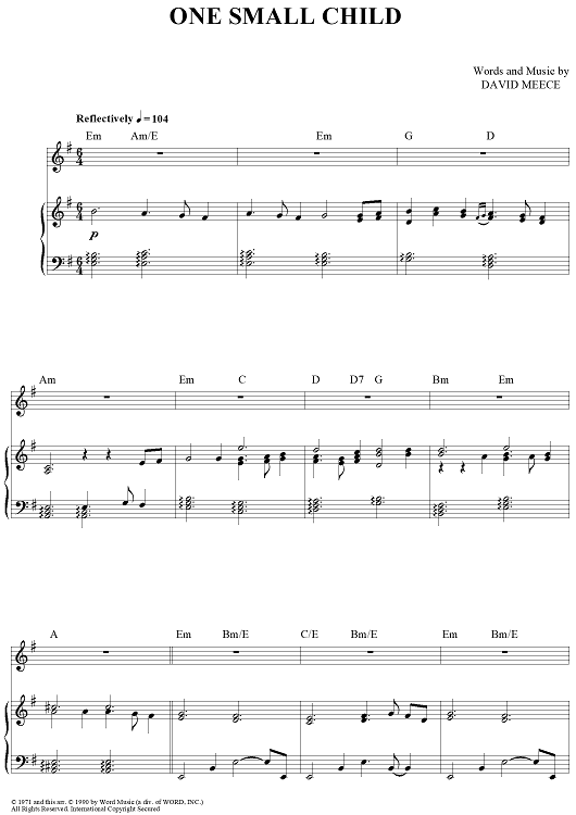Digital Sheet Music for One Small Child by David Meece scored for Piano/Vocal/Chords; id:429954