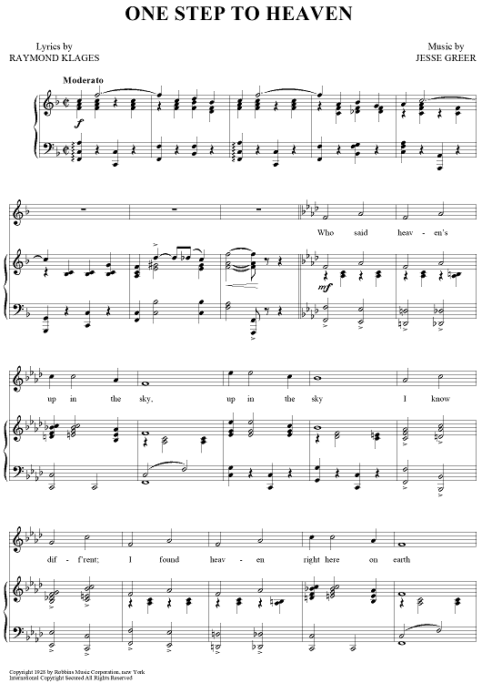 Digital Sheet Music for One Step To Heaven by Ray Klages, Jesse Greer scored for Piano/Vocal; id:427394