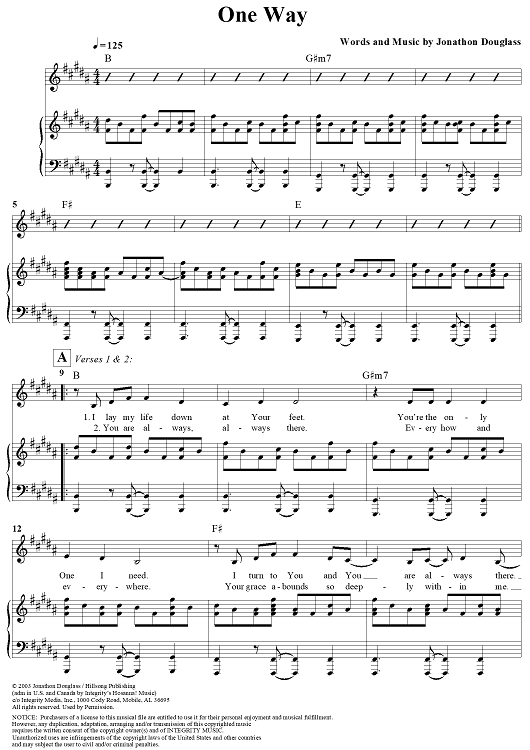 Digital Sheet Music for One Way by Jonathon Douglass scored for Piano/Vocal/Chords; id:314539
