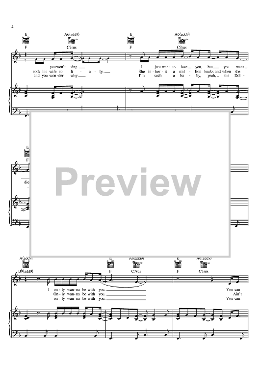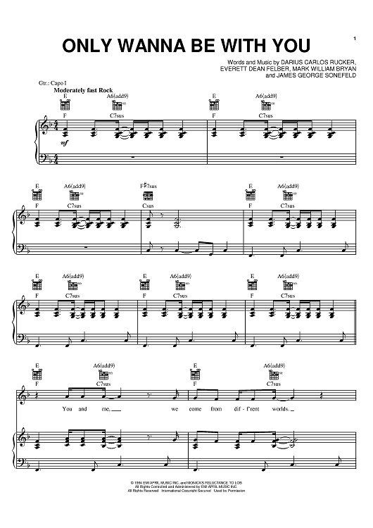 Digital Sheet Music for Only Wanna Be With You by Hootie & the Blowfish, Jim Sonefeld, Darius Rucker, Dean Felber scored for Piano/Vocal/Chords; id:368329