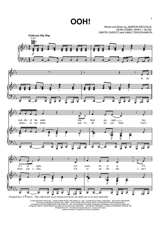 Digital Sheet Music for Ooh! by Mary J. Blige, Diddy, Jamison Mechalie scored for Piano/Vocal/Chords; id:372486