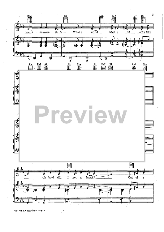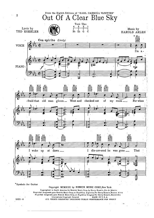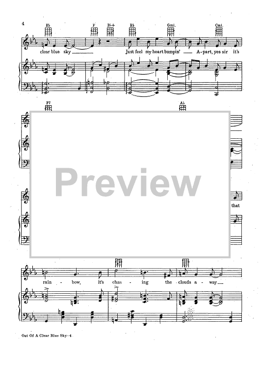 Digital Sheet Music for Out Of A Clear Blue Sky by Harold Arlen, Ted Koehler scored for Piano/Vocal/Chords; id:424228