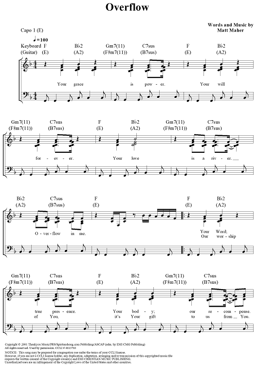Digital Sheet Music for Overflow by Matt Maher scored for Piano/Vocal/Chords; id:321038