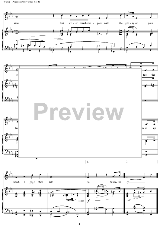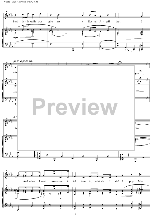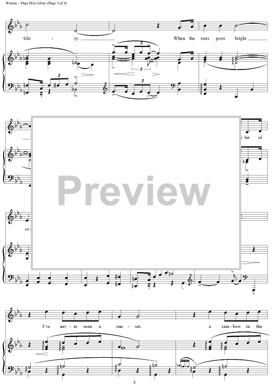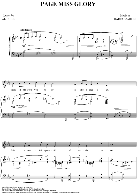 Digital Sheet Music for Page Miss Glory by Harry Warren, Al Dubin scored for Piano/Vocal/Chords; id:423429