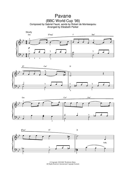 Digital Sheet Music for Pavane by Gabriel Fauré, Robert de Montesquiou scored for Piano; id:380655