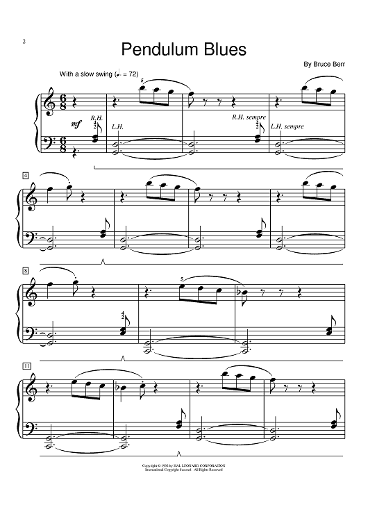 Digital Sheet Music for Pendulum Blues by Bruce Berr scored for Piano; id:374948
