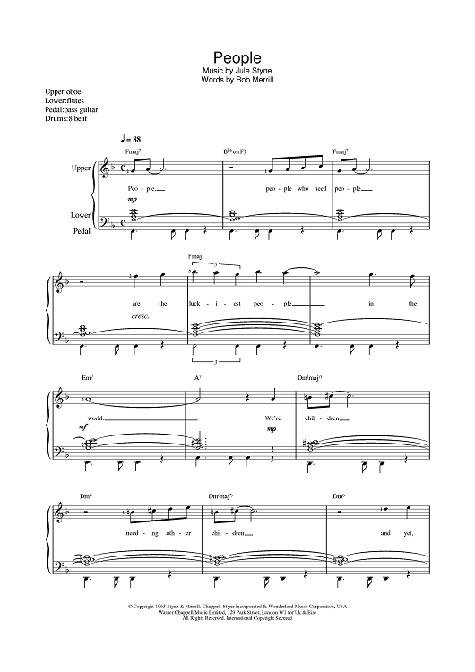 Digital Sheet Music for People by Jule Styne, Bob Merrill scored for Piano; id:375883