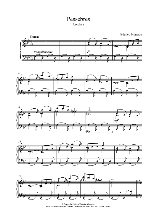 "Pessebres Creches I" Sheet Music by Federico Mompou