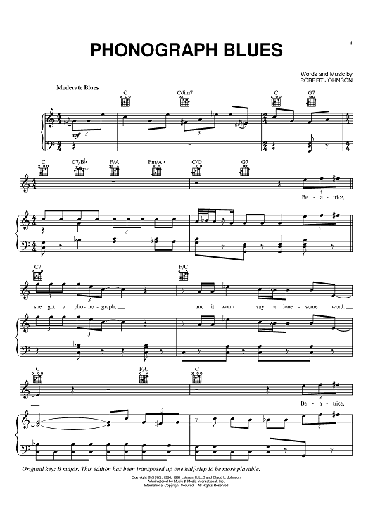 Digital Sheet Music for Phonograph Blues by Robert Johnson scored for Piano/Vocal/Chords; id:372274