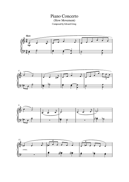 Digital Sheet Music for Piano Concerto in G minor (Slow Movement) by Edvard Grieg scored for Piano; id:385897