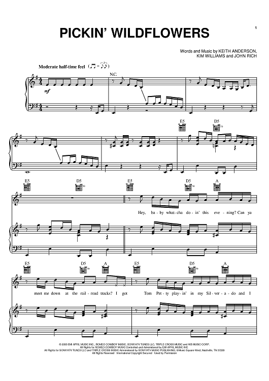Digital Sheet Music for Pickin' Wildflowers by Kim Williams, Bob Andy, John Rich scored for Piano/Vocal/Chords; id:384694
