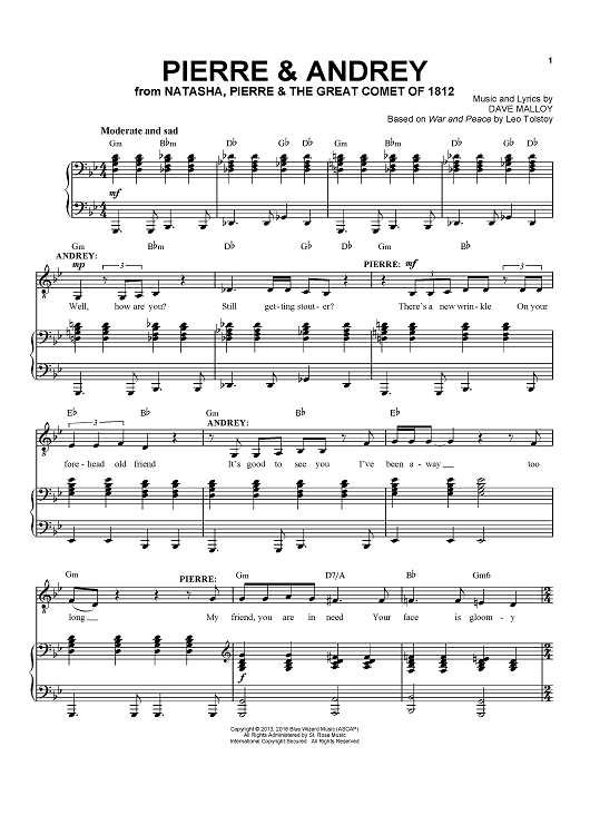 Digital Sheet Music for Pierre & Andrey - from Natasha, Pierre & The Great Comet of 1812 by Dave Malloy scored for Piano/Vocal/Chords; id:464803