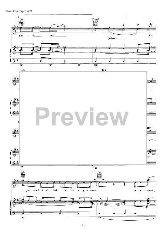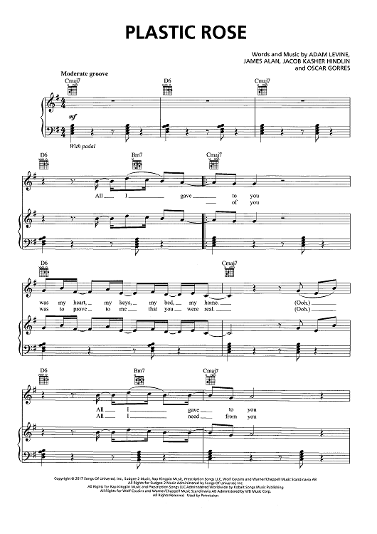 Digital Sheet Music for Plastic Rose by Adam Levine, Maroon 5, Jacob Hindlin, Oscar Gorres, James Alan scored for Piano/Vocal/Chords; id:466276